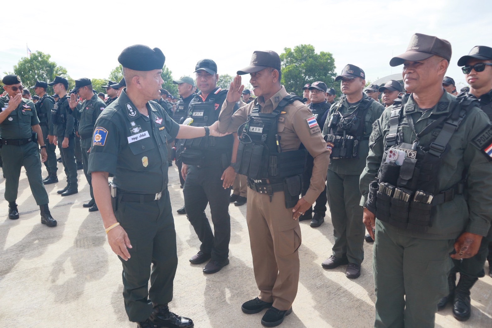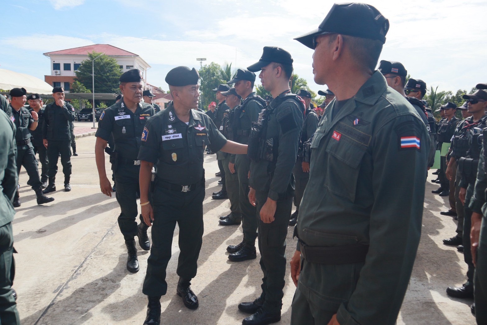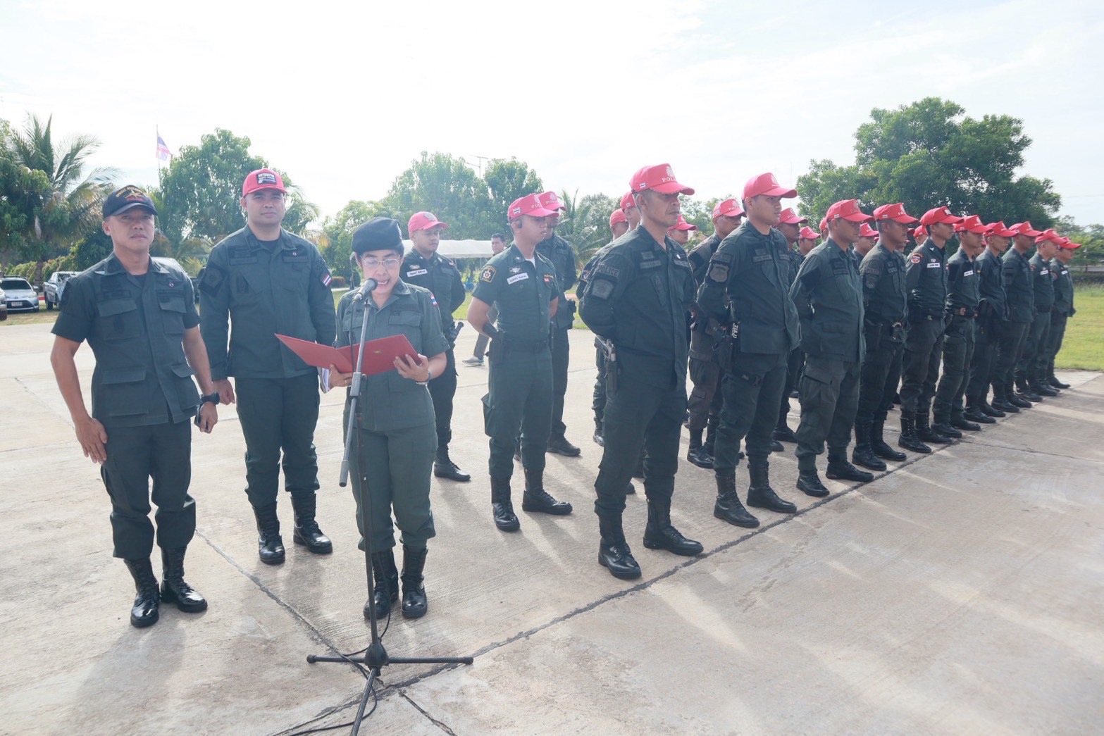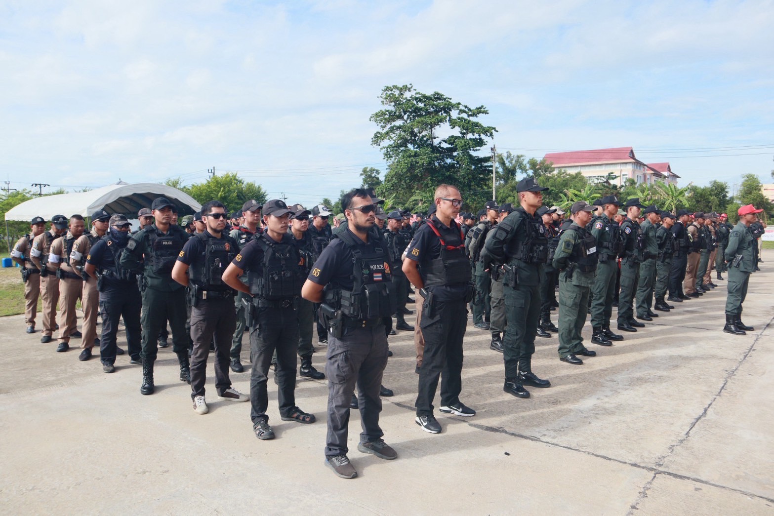 พร้อมด้วย ผกก.สส.ฯ, ผกก.ปพ.ฯ, ผกก.ฝอ.ฯ, หน.สภ.ในสังกัดฯ และ ขรก.ตร.ผู้เข้ารับการฝึกอบรมฯ ร่วมในพิธีฯ ณ ลานหน้าอาคารที่ทำการ ภ.จว.นราธิวาส ต.โคกเคียน อ.เมืองนราธิวาส จว.นราธิวาส